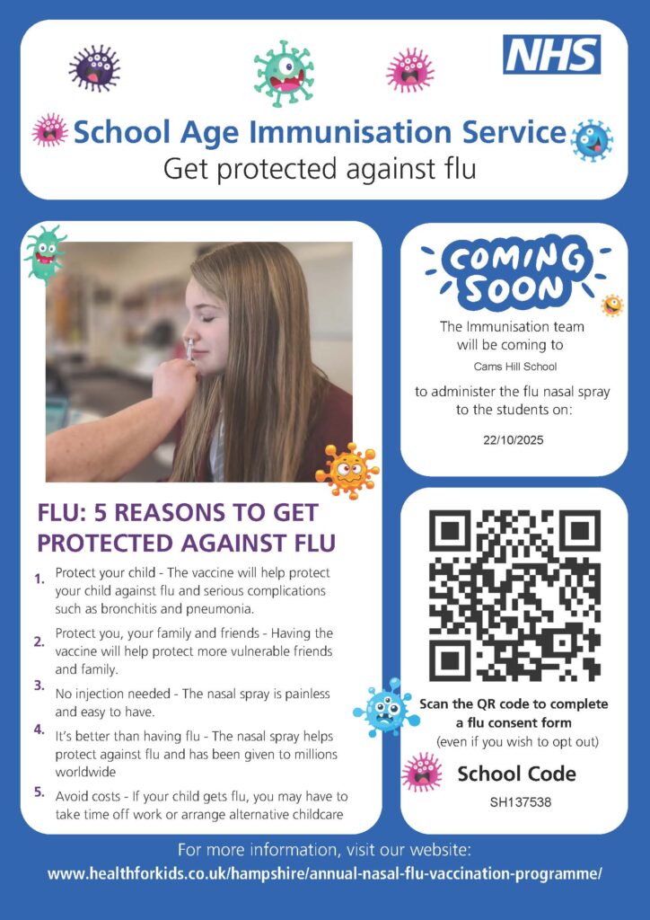A reminder that all parents should complete the flu vaccination form using the QR code below, even if you wish to opt out.